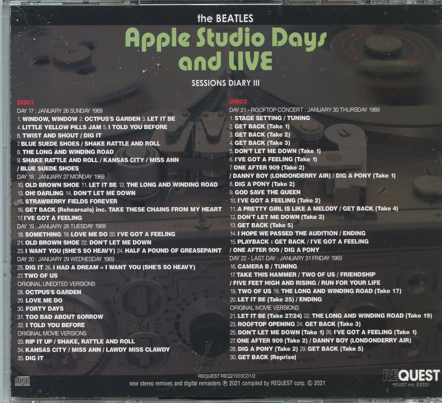 THE BEATLES – Twickenham Studio Days Session Diary 3 ( 2 CD SET ) ( REQUEST ) ( Day 17 Sunday January 26th to Day 22 last day Friday January 31st, 1969 )